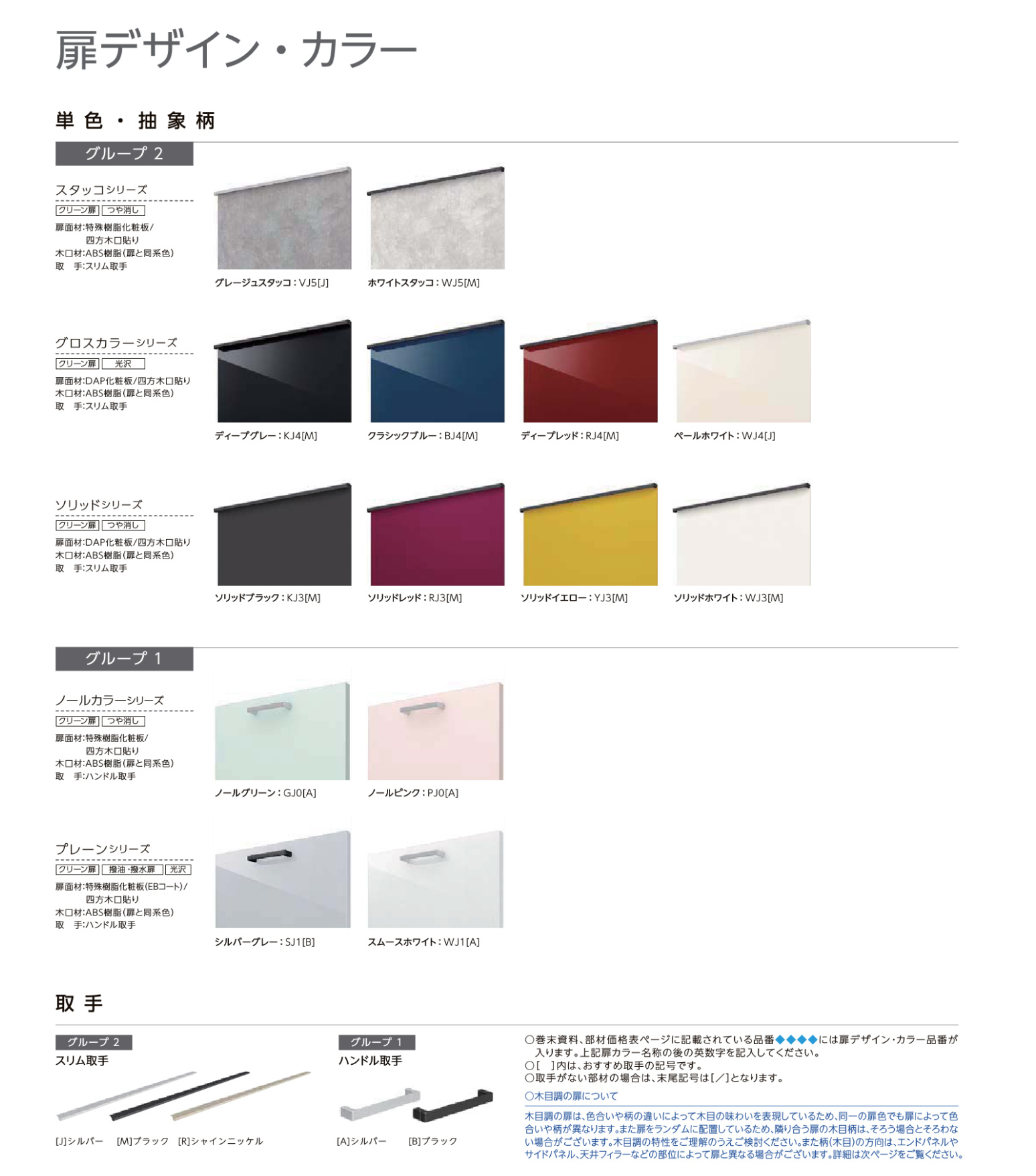 扉カラー全28色、さらに3色のスリム取手でコーディネートの幅が広がります。