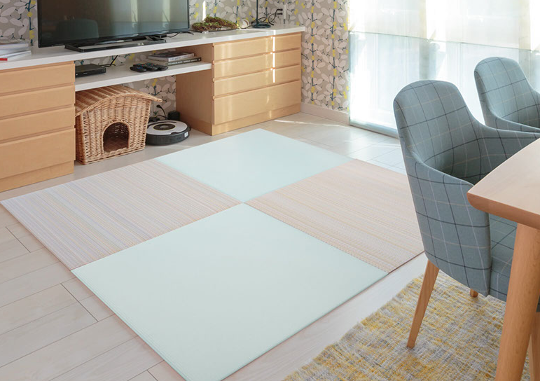 ダニ・カビの心配がない樹脂(ポリプロピレン)製の畳表。 小さいお子さまやアレルギーの方も安心です。(日本アトピー協会推奨品) 日焼けによる色落ちがほとんどしない為、 一枚だけの張替えも可能です。 こちらは半帖物がオススメとなります。