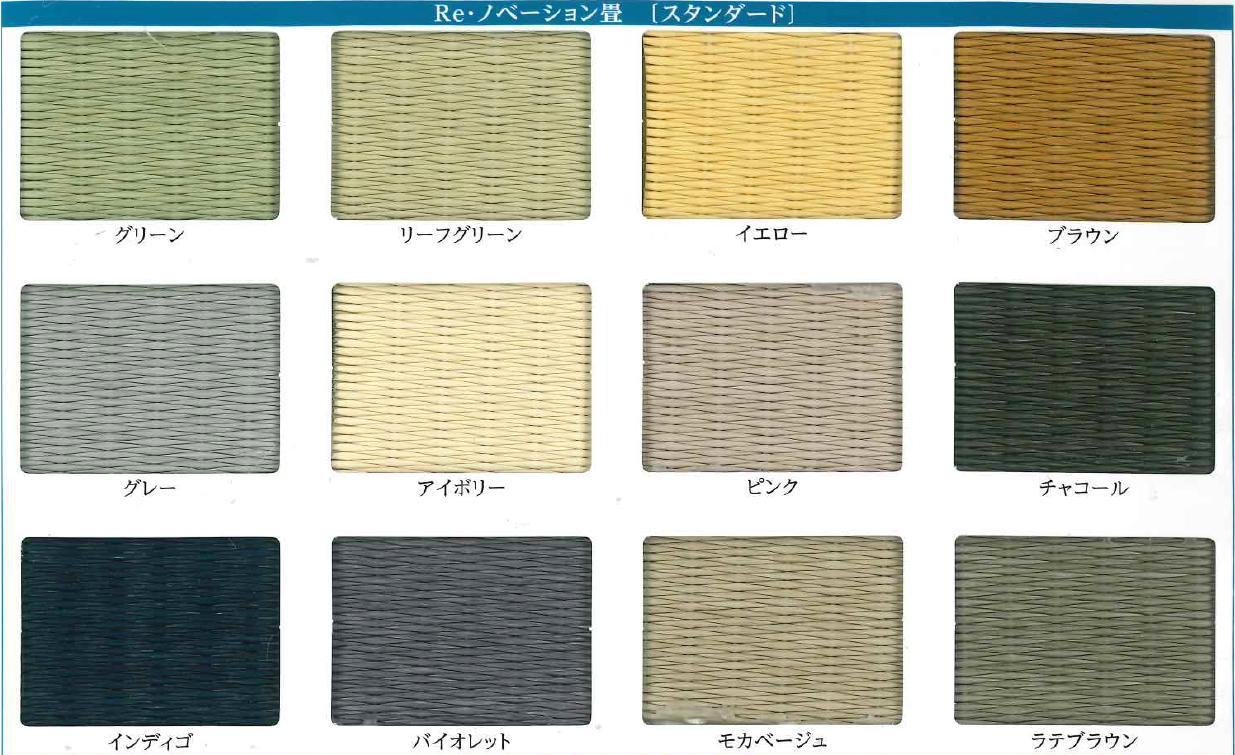 カラーバリエーション豊富なデザイン性抜群の畳です。 日焼けによる色落ちがほとんどしない為、 一枚だけの張替えも可能です。 こちらは半帖物がオススメとなります。 ※画像1枚目:アイボリー、2枚目:モカベージュ、3枚目:チャコール